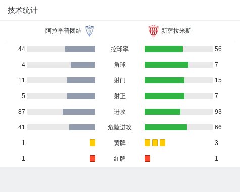 下半场补时第5分钟,新萨拉米斯球队杜尔米沙伊吃到第二张黄牌。