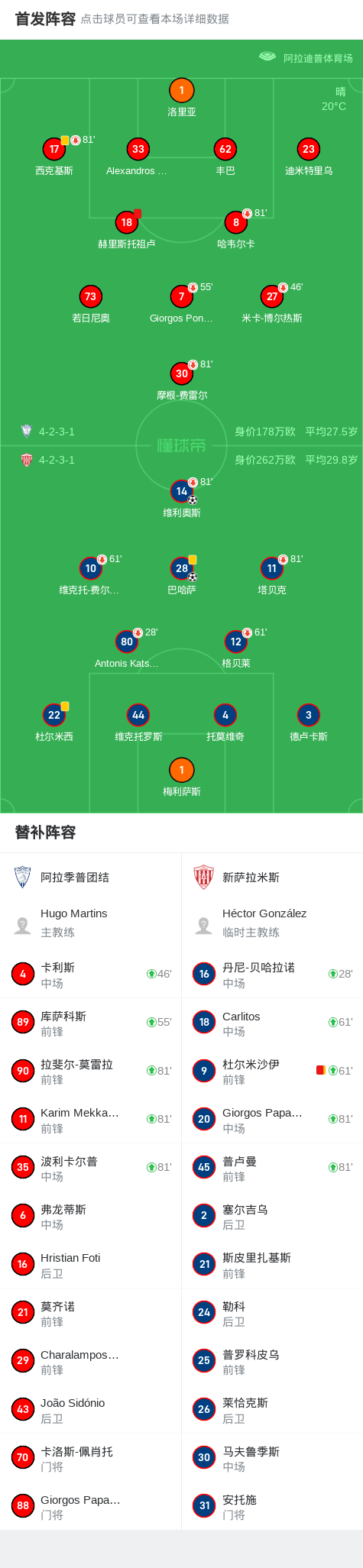第19分钟,新萨拉米斯球员维利奥斯打入一球。