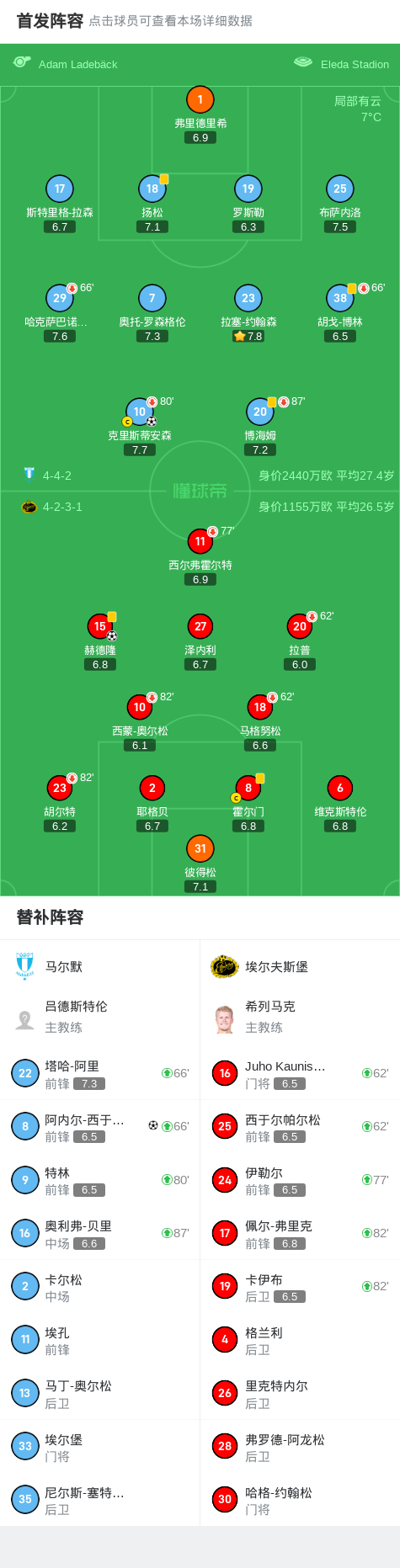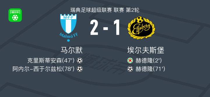 马尔默2-1埃尔夫斯堡,阿内尔-西于尔兹松、克里斯蒂安森破门