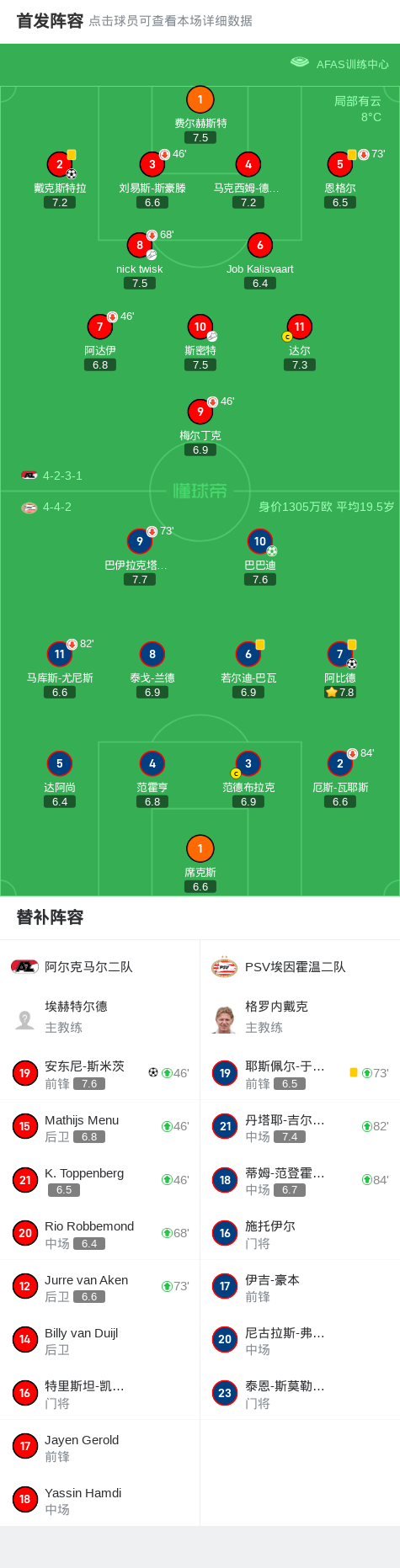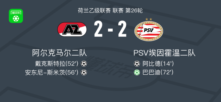 阿尔克马尔二队2-2PSV埃因霍温二队,阿比德先拔头筹,巴巴迪扳平比分