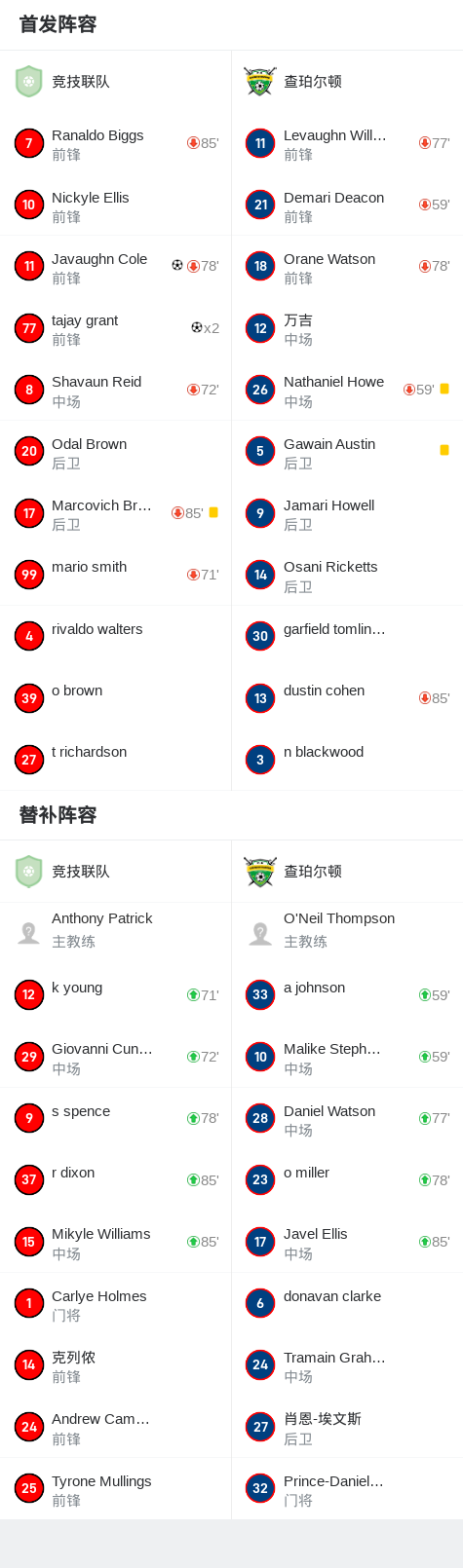 竞技联队3-0大胜查珀尔顿,tajay grant双响,Javaughn Cole破门
