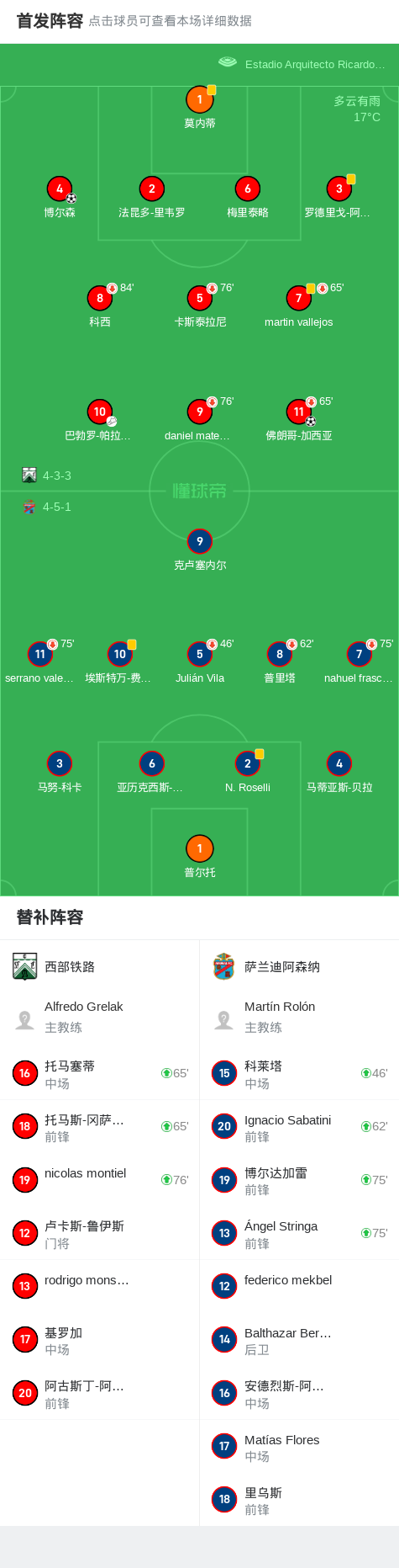 第44分钟,西部铁路球员巴勃罗-帕拉西奥助攻佛朗哥-加西亚打入一球。