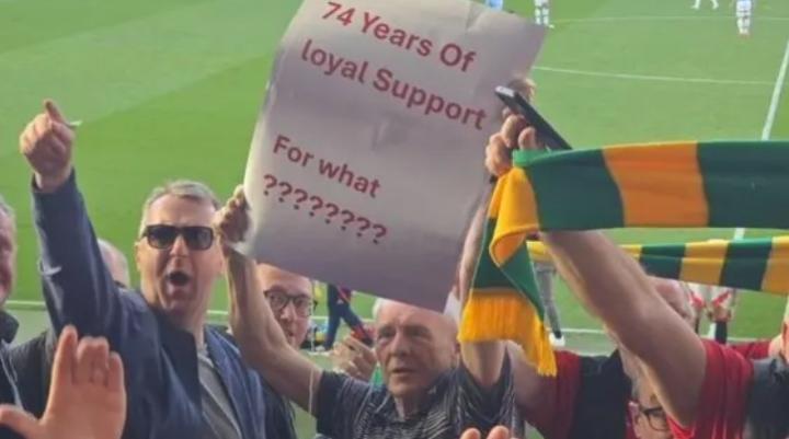 在下半场中段,迈克尔-卡尼将自己的标语牌对准了老特拉福德的董事席,比赛结束时,数百名曼联支持者表达了他们对下赛季票价上涨、优惠政策削减以及偿还曼联10亿英镑债务所花费资金的不满,1958年球迷团体还安排了一场更大规模的“静坐”抗议。