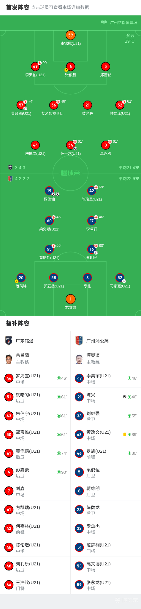 北京时间4月8日,中国足球乙级联赛预赛阶段第4轮,广东铭途主场迎战广州蒲公英。比赛中,广东铭途由任一求打入一球。广州蒲公英方面,陈兴贡献一粒进球,杨悠仙表现出色完成梅开二度。最终,广东铭途以1-3不敌广州蒲公英。