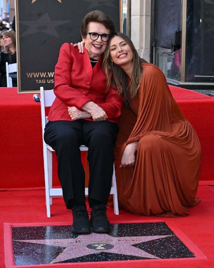 4月7日,WTA创始人比利-简-金在好莱坞星光大道留星,成为第一位在体育娱乐行业获此殊荣的女性,网坛名宿莎拉波娃同样出席活动。