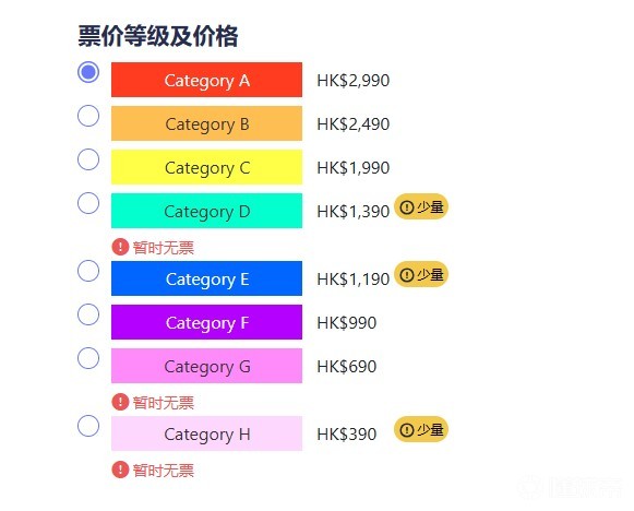 这场比赛一共有8个档位的门票,最高价格为2990港元(约人民币2824元),最低为390港元(约人民币368元),目前部分档位的票价已经售罄。