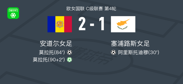 安道尔女足2-1逆转塞浦路斯女足,莫拉托包办2球