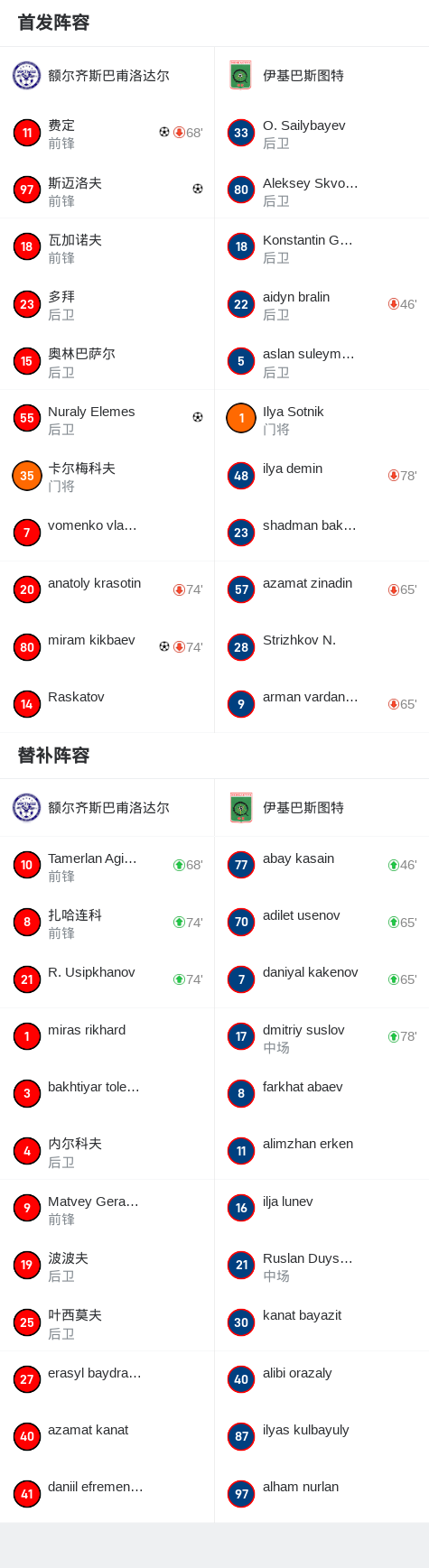 第41分钟,额尔齐斯巴甫洛达尔球员Nuraly Elemes打入一球。