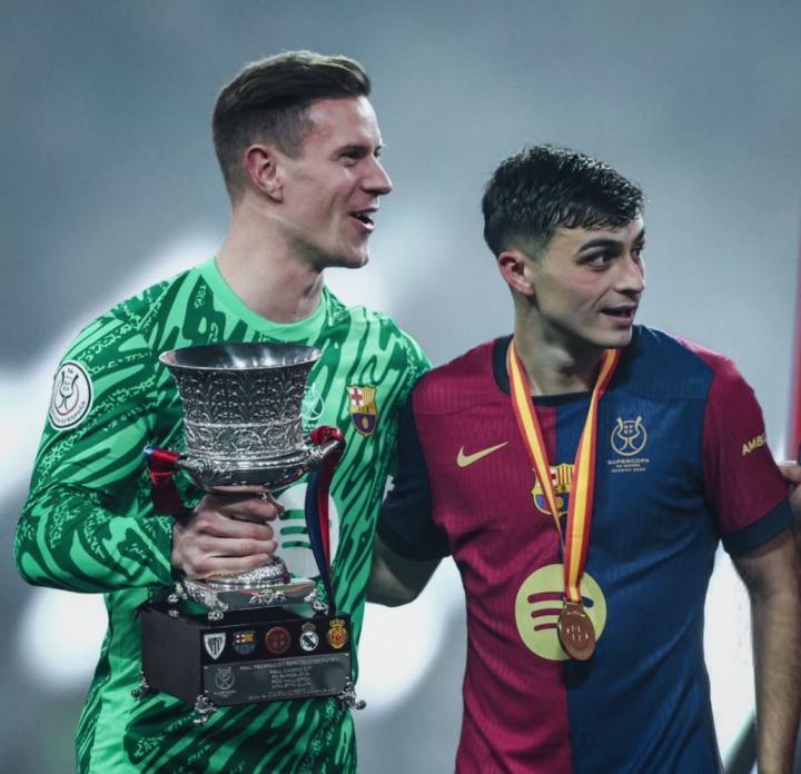 如今,阿劳霍、德容、拉菲尼亚、佩德里是巴萨的四位副队长,特尔施特根认为,佩德里将来会接过球队的队长袖标。
