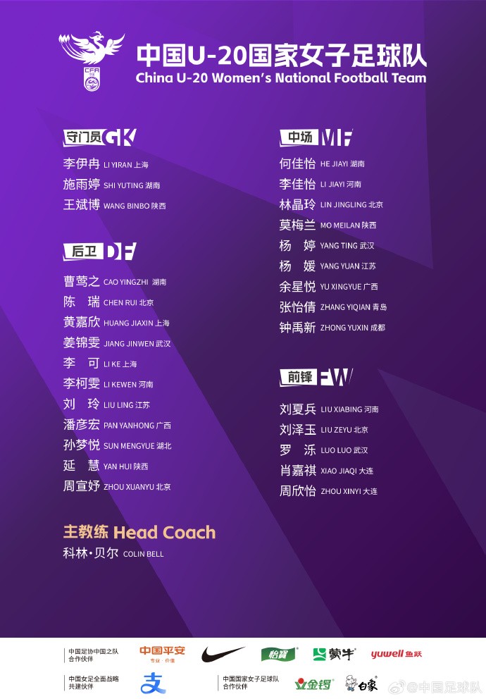 U20女足集训名单:科林-贝尔挂帅,黄嘉欣、余星悦在列