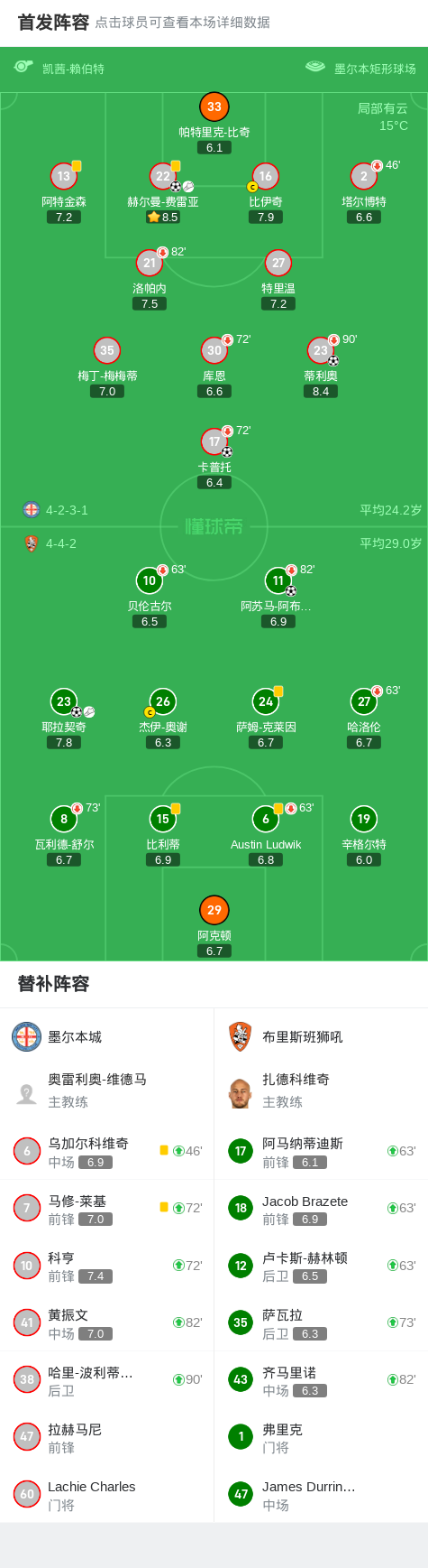 墨尔本城3-2逆转布里斯班狮吼,赫尔曼-费雷亚传射,卡普托破门