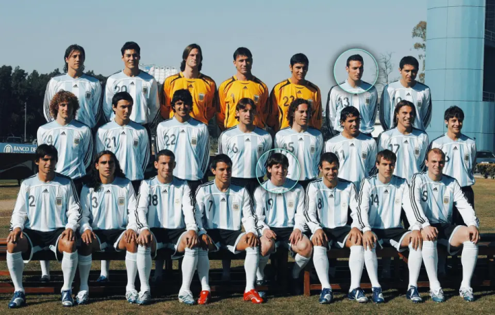 ↑2006年世界杯阿根廷国家队全家福,23号为乌斯塔里,19号为梅西,13号为现任阿根廷主帅斯卡洛尼