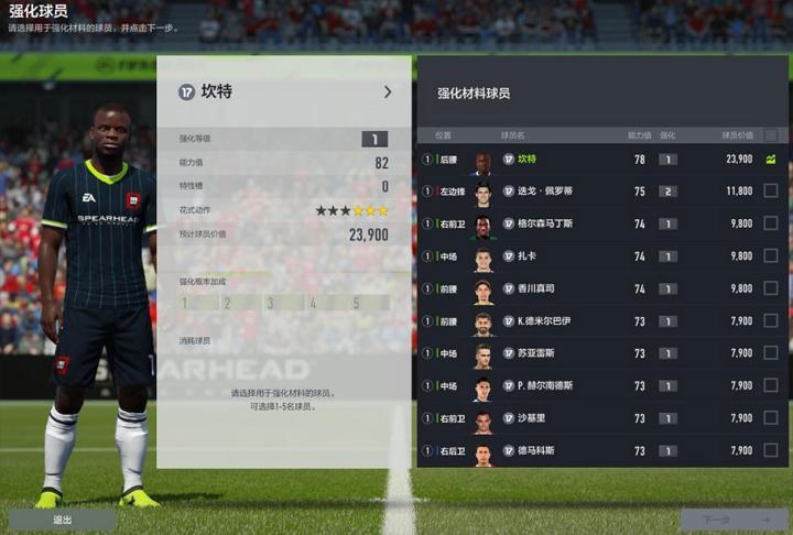 FIFA ONLINE 4可使用不同的球员进行强化: