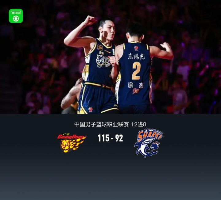 广东115-92大胜上海大比分2-1晋级8强,徐杰25+6+11,胡明轩20分