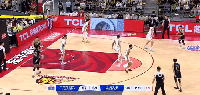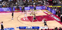 第二节,贝兹利空中面对洛夫顿闪躲拉杆打进,广东46-32上海