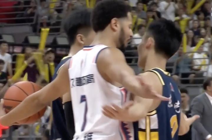 比赛进行到第三节,徐杰在一次进攻中面对哈维的防守直冲篮下上篮得分,随后,兴奋地徐杰冲着哈维怒吼,随后两人产生了小摩擦。