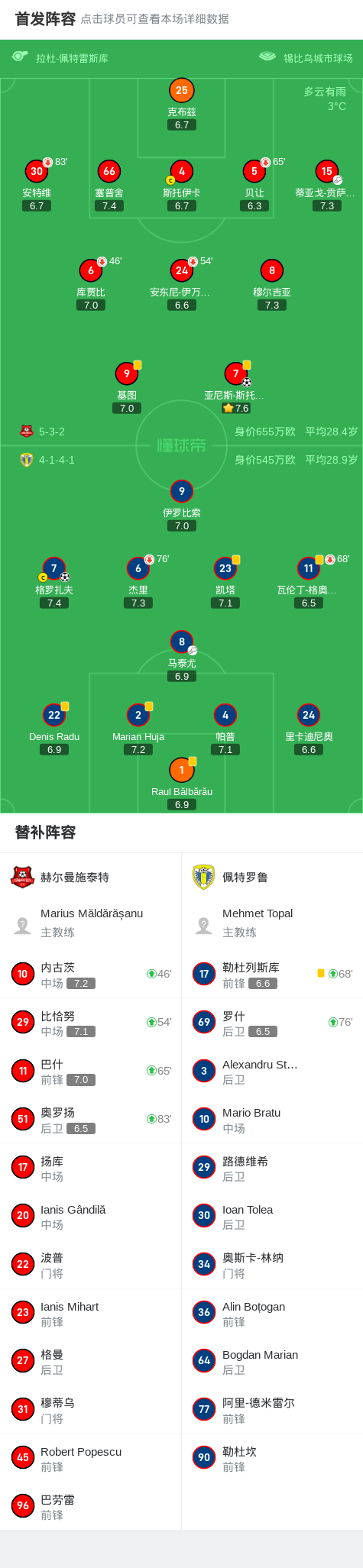 赫尔曼施泰特1-1佩特罗鲁,格罗扎夫破门,亚尼斯-斯托伊卡救主