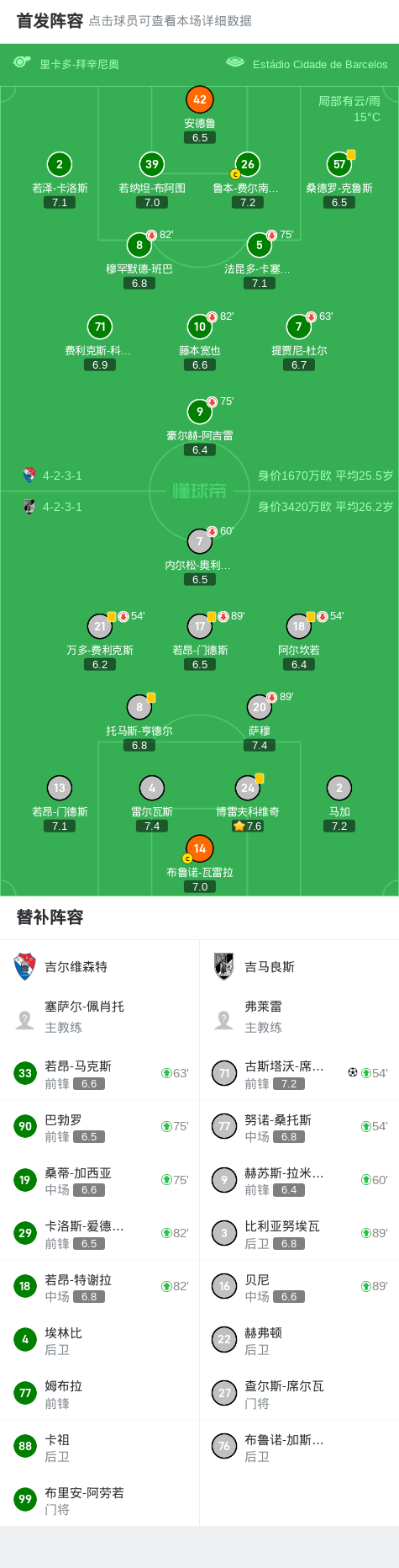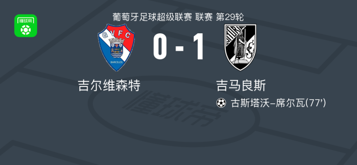 吉马良斯1-0吉尔维森特,古斯塔沃-席尔瓦打进全场唯一进球战报bot @懂球帝2025-04-12 05:18北京时间4月12日,葡萄牙足球超级联赛第29轮,吉尔维森特主场迎战吉马良斯。比赛中,吉马良斯由古斯塔沃-席尔瓦完成破门,为球队取得领先。最终,吉尔维森特0-1不敌吉马良斯。点击查看本场比赛详细数据>>点击查看葡超完整积分榜>>精彩瞬间第77分钟,吉马良斯球员古斯塔沃-席尔瓦打入一球。 球队阵容 技术统计 展开更多