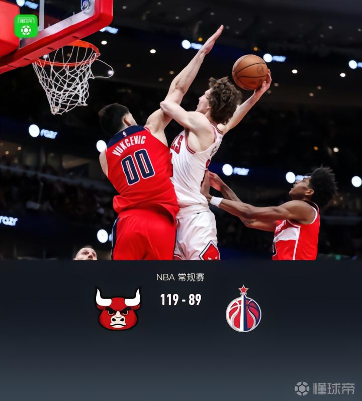 公牛119-89奇才,菲利普斯23+9,武切维奇15+12+8