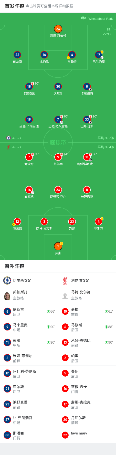 切尔西女足2-1逆转利物浦女足,比弗-琼斯破门,卡思伯特建功