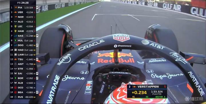 维斯塔潘换上软胎新刷一圈,落后头名的皮亚斯特里0.2秒上到第2;