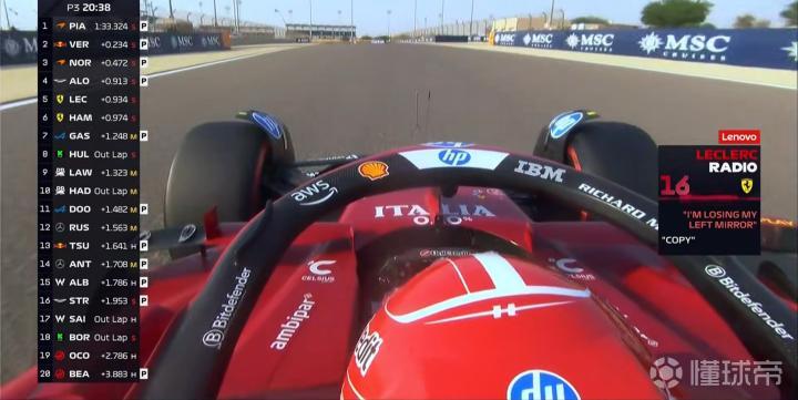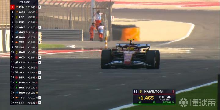 两台法拉利新刷一圈,勒克莱尔上到第3,汉密尔顿排在第10;