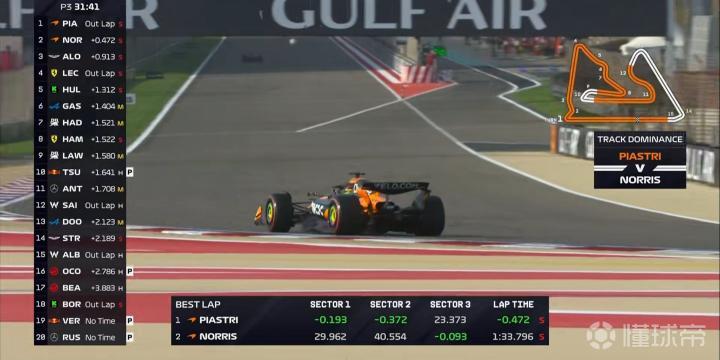F1巴林站三练:迈凯伦包揽一二,勒克莱尔第3,角田裕毅第20