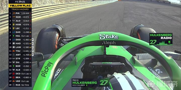 熟悉的Anti-stall!霍肯博格的赛车在4号弯触发防熄火装置后停在了8号弯旁,赛会出示虚拟安全车!