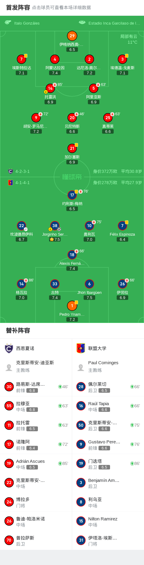 联盟大学1-0西恩夏诺,Jorginho Sernaqué绝杀