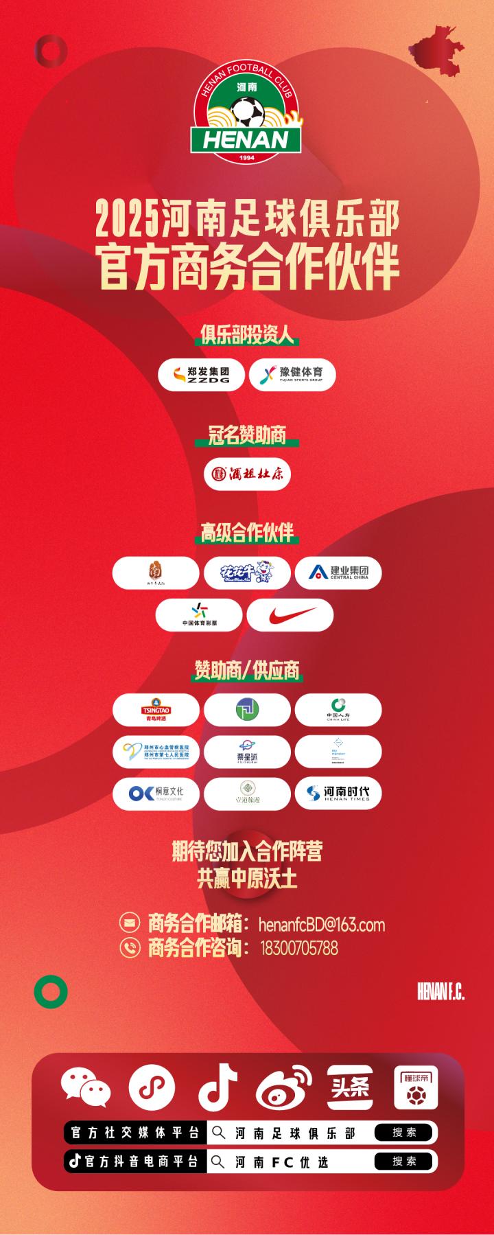 2025华润饮料中超联赛第8轮,河南足球俱乐部酒祖杜康主场对阵青岛海牛,俱乐部将在赛前开展中超联赛参赛500场里程碑相关纪念活动,诚邀各位球迷前来航体为河南足球呐喊助威。
