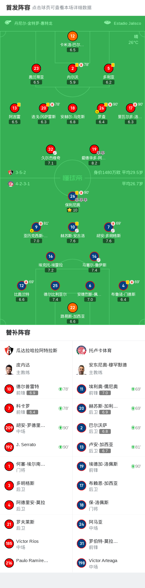 托卢卡体育3-2瓜达拉哈拉阿特拉斯取墨超5连胜,保利尼奥帽子戏法