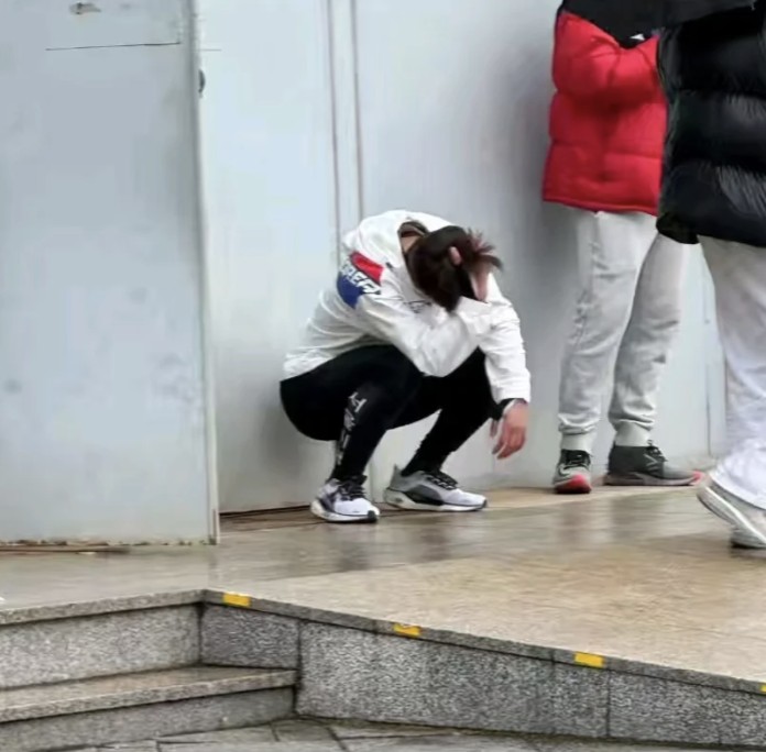 昨天的比赛后,他在比赛场馆外抱头痛哭。