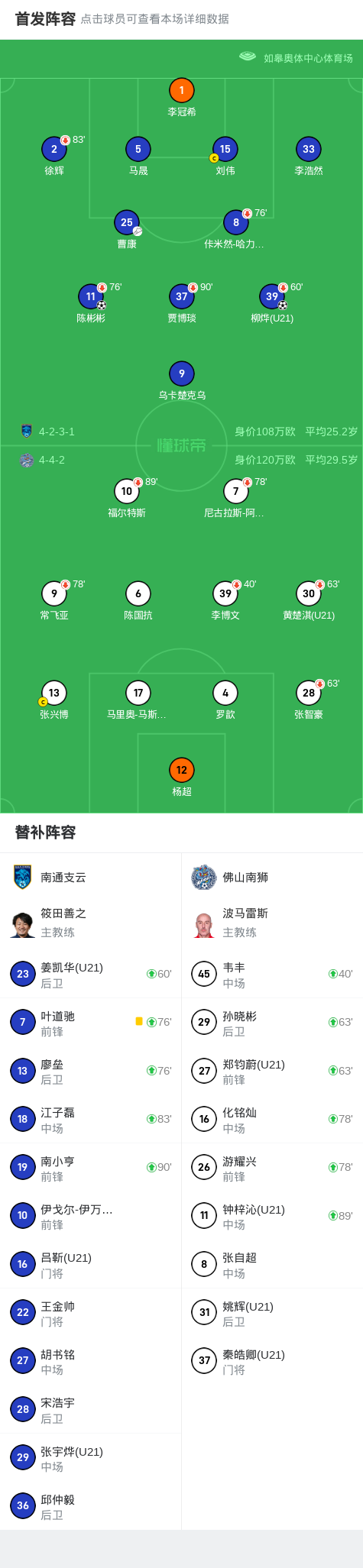 南通支云2-0佛山南狮,柳烨建功,陈彬彬世界波