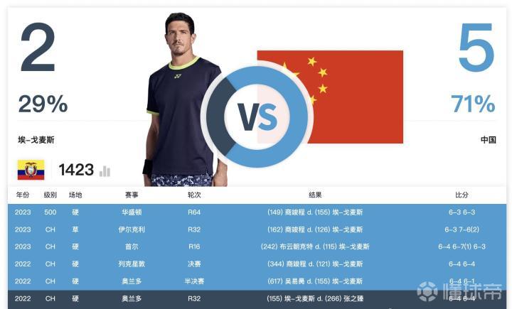 戈麦斯两年前曾多次与中国男子球员交手,遭遇了一波单打五连败,目前他还未正式宣布退役,不过世界排名已经跌到1000名开外。