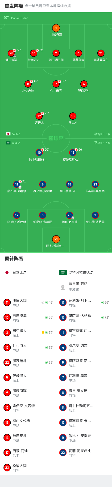 北京时间4月13日U17亚洲杯 1/4决赛,日本U17对阵沙特阿拉伯U17。日本U17濑口大翔破门,浅田大翔破门。沙特阿拉伯U17阿布-赛义德破门,萨布里-达哈尔破门。最终比分日本U17 4-5 沙特阿拉伯U17。