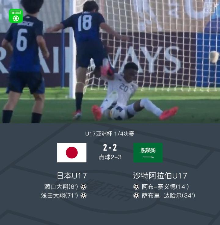 日本U17点球大战总比分4-5不敌沙特U17,日本三人罚丢点球