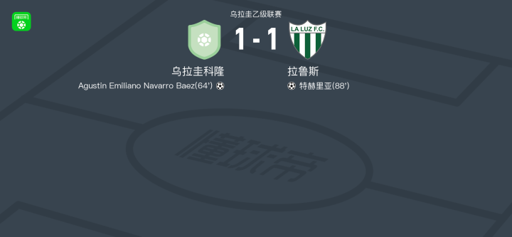 北京时间4月14日,乌拉圭乙级联赛展开一场较量,乌拉圭科隆坐镇主场迎战拉鲁斯。比赛中,乌拉圭科隆由Agustin Emiliano Navarro Baez完成破门,为球队取得领先。随后,拉鲁斯凭借特赫里亚的进球将比分扳平。最终,双方以1-1的比分握手言和。