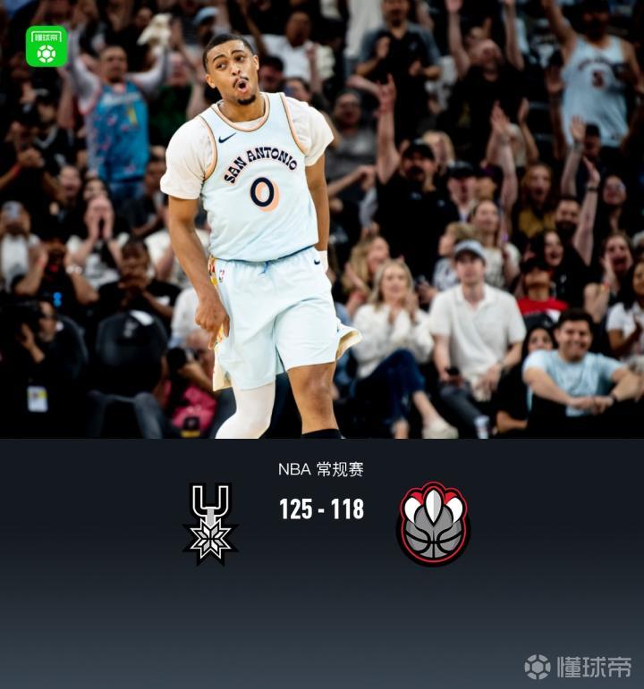 马刺125-118猛龙,卡斯尔20+8+6,斯科蒂-巴恩斯空砍35分