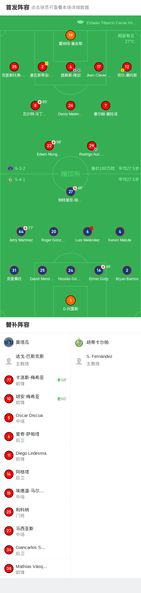 第77分钟,胡蒂卡尔帕球队Luis Meléndez吃到红牌。