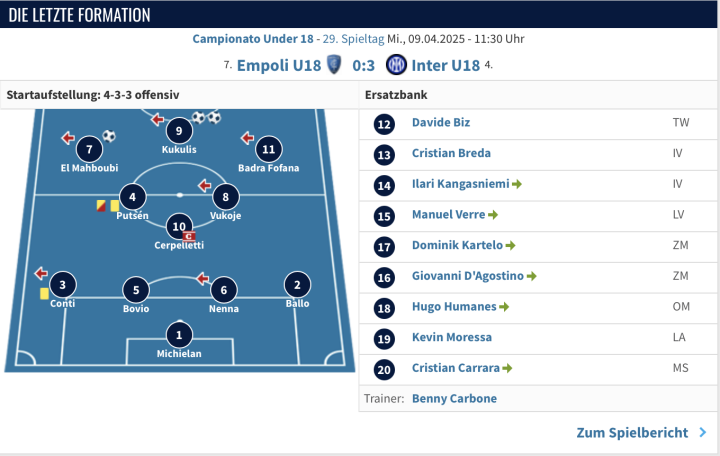 U18 恩波利0:3国际米兰