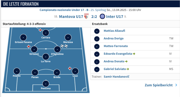 U17 曼托瓦2:2国际米兰