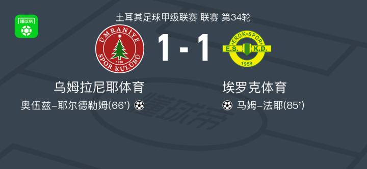 乌姆拉尼耶体育1-1埃罗克体育,奥伍兹-耶尔德勒姆破僵,马姆-法耶救主