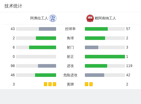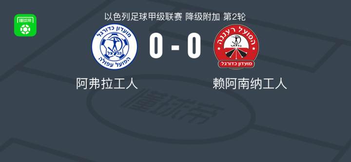 阿弗拉工人0-0赖阿南纳工人,双方鏖战90分钟未分胜负战报bot @懂球帝2025-04-15 01:55北京时间4月15日,以色列足球甲级联赛降级附加赛第2轮,阿弗拉工人主场迎战赖阿南纳工人。全场比赛双方均未能取得进球,最终阿弗拉工人与赖阿南纳工人以0-0的比分握手言和。点击查看本场比赛详细数据>> 技术统计 展开更多