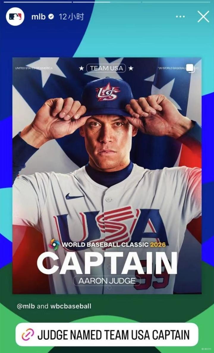 4月15日,MLB官方宣布,明星球员阿隆-贾奇将担任美国队队长,出战世界棒球经典赛。