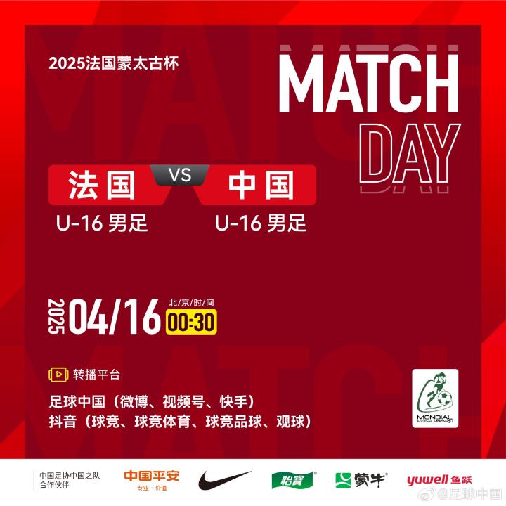 官方:足球中国官方账号将转播U16国少蒙太古杯的比赛