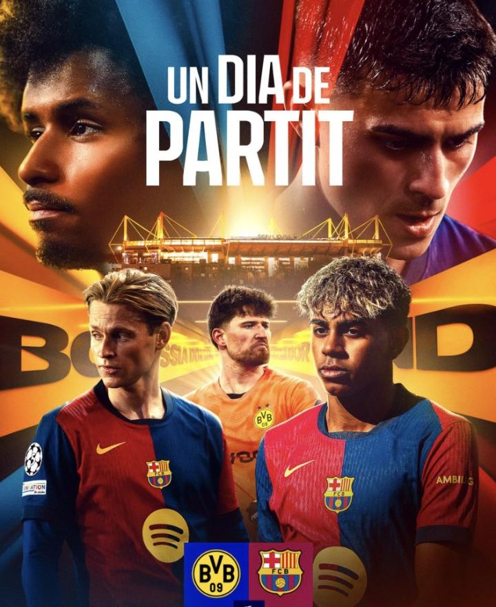 巴萨欧冠对阵多特海报:德容、佩德里、亚马尔出镜LaPulga @懂球帝2025-04-15 16:29欧冠1/4决赛次回合,巴塞罗那将在客场对阵多特蒙德,巴萨官方在赛前发布了本场比赛海报。巴塞罗那在欧冠1/4决赛首回合4-0大胜多特蒙德,北京时间4月16日凌晨3点,他们将在客场作战。赛前巴萨官方发布了本场比赛海报,弗朗基-德容、亚马尔和佩德里出镜。在本赛季欧冠联赛阶段,巴塞罗那曾在客场与多特蒙德交锋,他们以3-2的比分拿到了胜利。展开更多