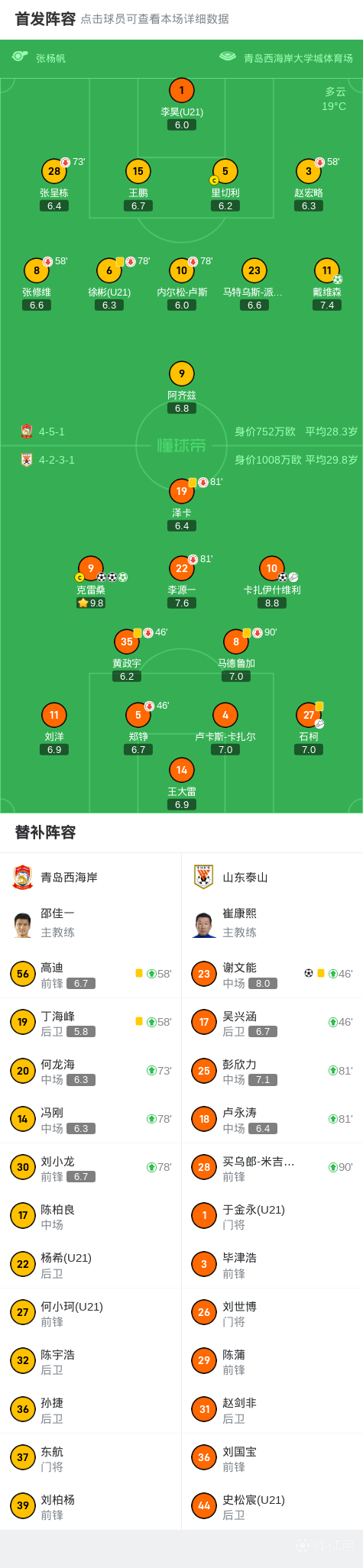 第46分钟,吴兴涵、谢文能替补上场,替下黄政宇、郑铮