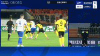 第38分钟,克雷桑禁区内倒地,张杨帆长时间观看VAR后判罚点球。