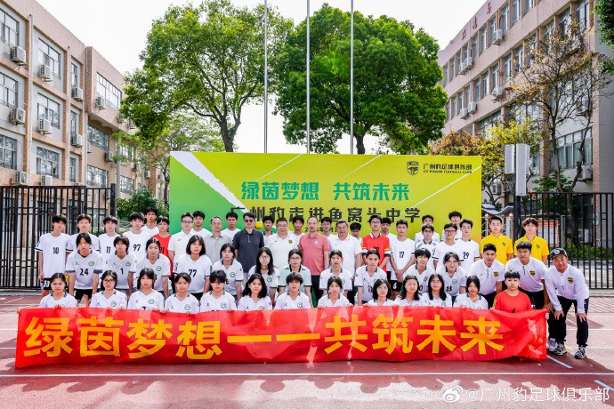 据广州豹足球俱乐部的消息,4月14日下午,广州豹足球俱乐部走进广州市南沙鱼窝头中学,开展“绿茵梦想 共筑未来”走进校园系列主题活动。一线队球员侯煜、曾超,U-19梯队球员李俊毅、阮俊潮出席本次活动。