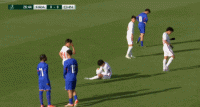第11分钟,张旭尧拼抢头球,双方头碰到一起